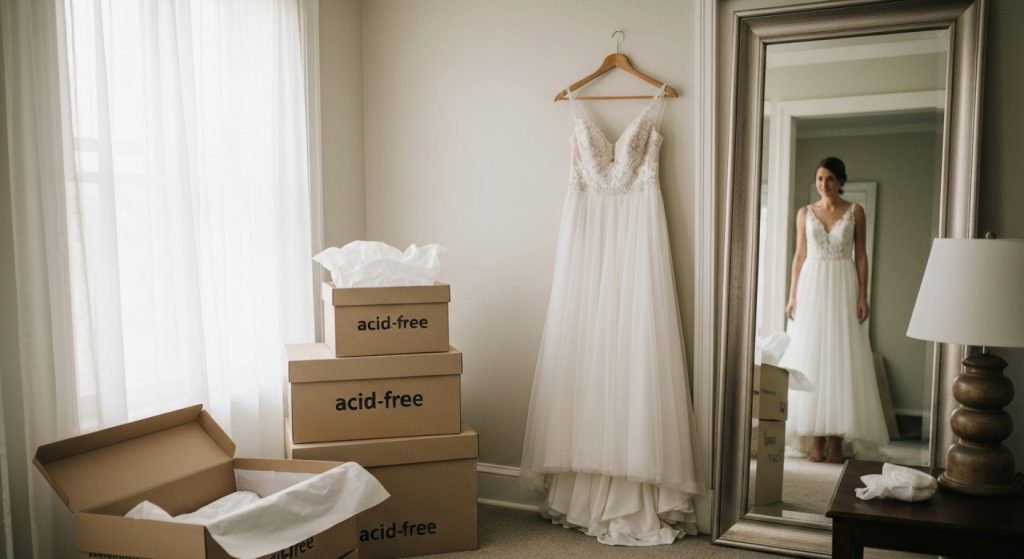 אחרי הניקוי המקצועי מגיע השלב הקריטי – אחסון נכון. השמלה צריכה להיות מוגנת מאור, לחות, חרקים ואבק לשנים רבות.