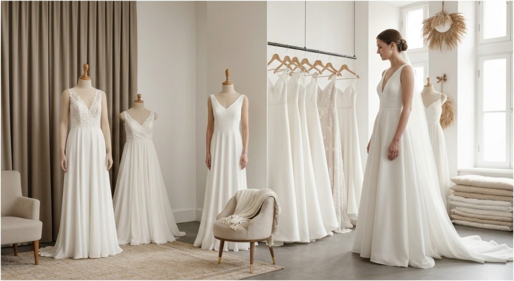 עולם האופנה הכלותית של 2025 מתאפיין בכמה טרנדים מרכזיים שמשנים את כל התפיסה. המינימליזם המתוחכם עולה על כל טרנד אחר – שמלות עם קווים נקיים, בדים איכותיים וגזרות מחמיאות שמדגישות את היופי הטבעי של הכלה.