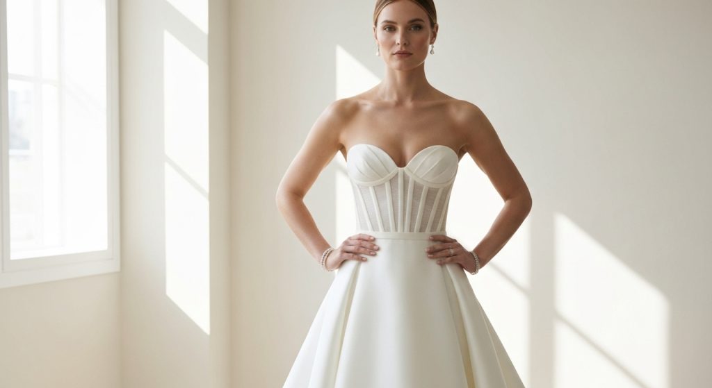 החשש הגדול ביותר של כלות רבות הוא שהשמלה "תחליק" או תזוז במהלך הערב. זהו חשש מובן, אך עם שמלה איכותית, הוא פשוט לא רלוונטי. שמלת סטרפלס בנויה היטב כוללת מבנה פנימי חכם, כמו עצמות (boning) וקאפים מובנים, שמספקים תמיכה מלאה ומחזיקים את השמלה במקומה. כך את יכולה לרקוד, לחבק ולהשתולל בלי דאגות.