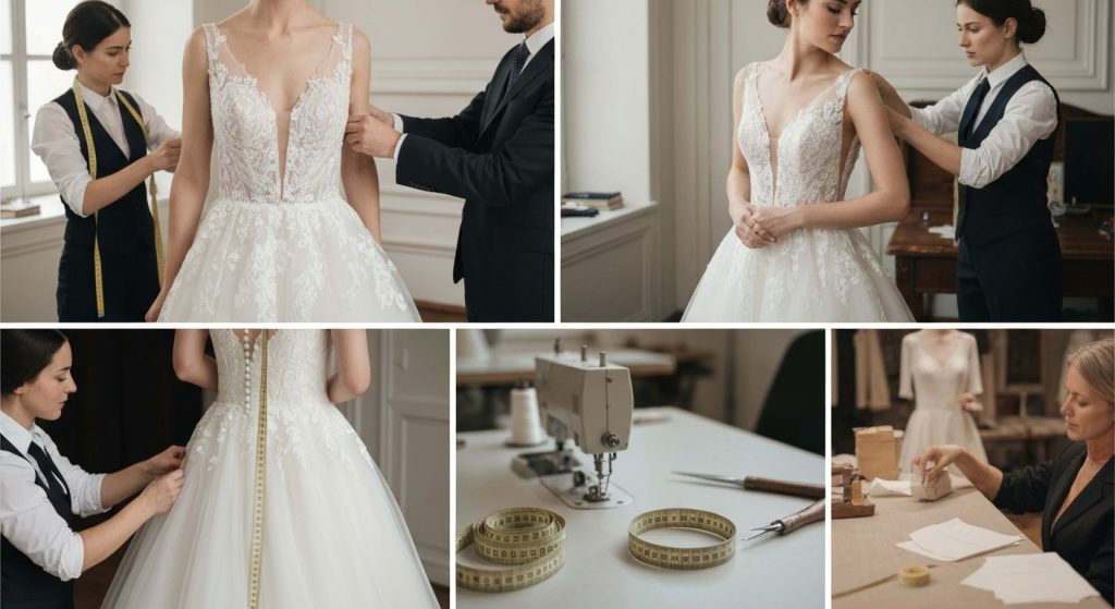 אנחנו ממליצים להתחיל את התהליך כ-4-6 חודשים לפני החתונה. זה מאפשר מספיק זמן לתפירה, מדידות ותיקונים אחרונים, ומבטיח שהכל יהיה מושלם ומוכן ליום הגדול שלך ללא לחץ מיותר.