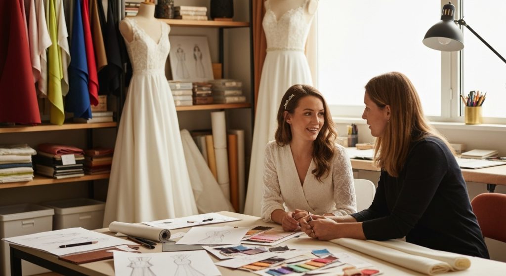 השלב הראשון הוא תמיד שיחה. פגישה שבה את משתפת בחלומות, בסגנון החתונה, בתמונות שאהבת. זו ההזדמנות של המעצבת להכיר אותך. משם, מתחילים לשרטט סקיצות, לבחור בדים, ולדמיין יחד איך הכל ייראה. העבודה עם מעצבת שמלות כלה אמיתית היא לא רק מדידות, אלא מסע משותף של יצירה.